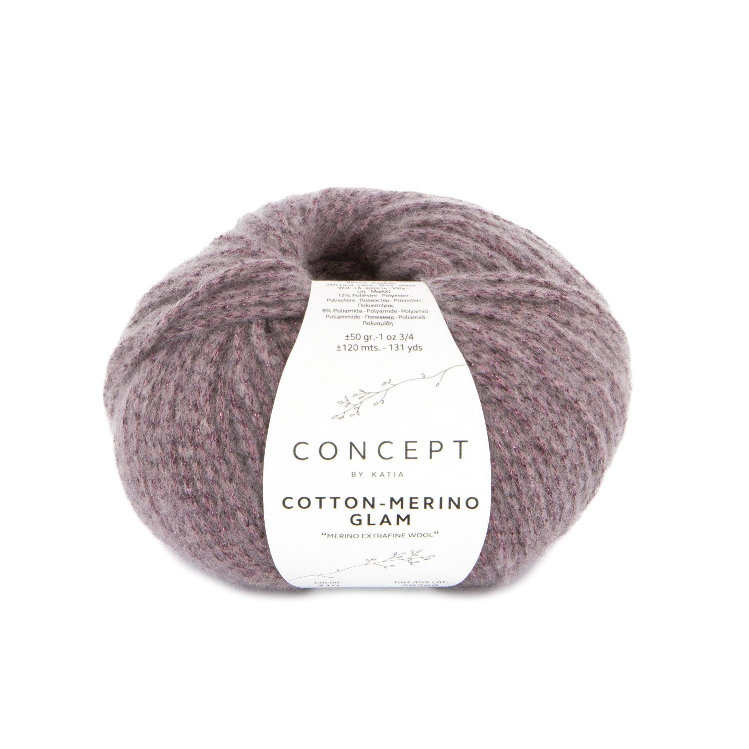 Cotton-Merino Glam es la versión glamurosa de Cotton-Merino, uno de los hilos Concept by Katia favoritos de los amantes de las fibras naturales. Se trata pues de una extensión del original con un sutil toque metálico brillante.
